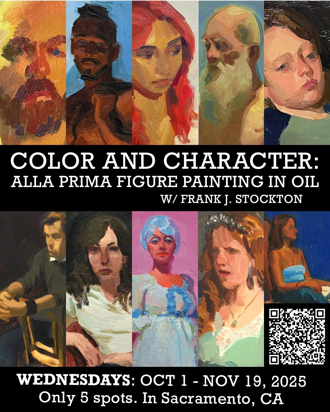 New class: Color and Character: Alla Prima Figure Painting in Oil August 20, 2025 Come paint figures with me in my Sacramento studio this Fall. Only 3 spots left. Tap or click on the images above for more information about the class.